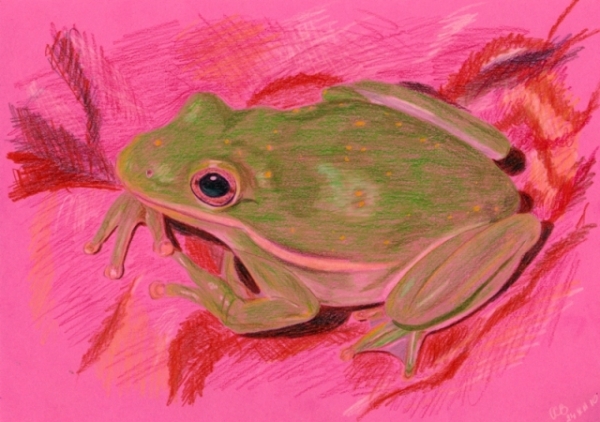 Нарисовалась зеленая лягушка, почему-то на розовой бумаге. Так вот захотелось.